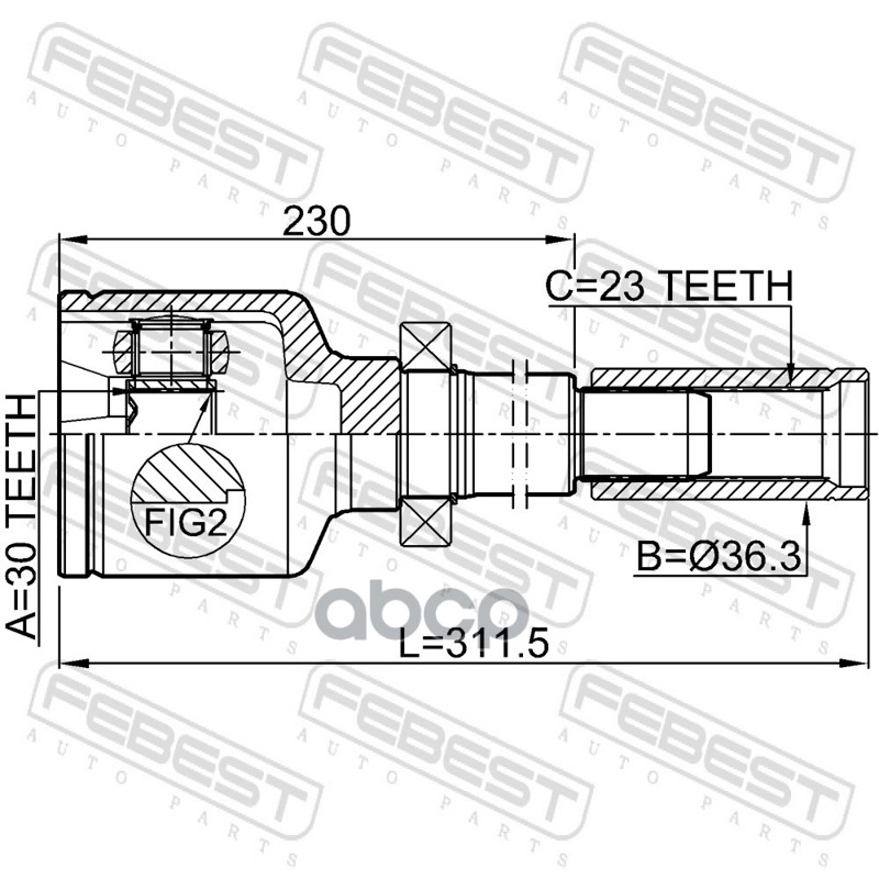 Бренд: Febest, артикул: 2411MEGIIRH, Шрус внутренний правый 30x36.3x23 RENAULT MEGANE II 2002-2008. |