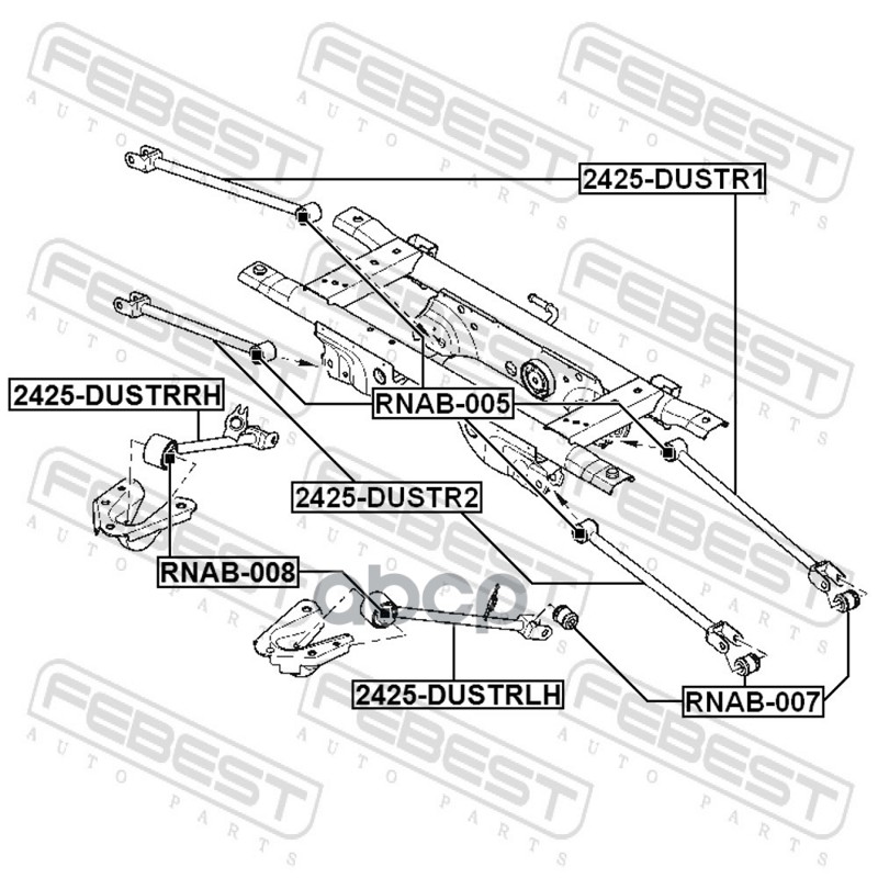 Бренд: Febest, артикул: 2425DUSTR1, Рычаг Renault Duster 10- задний FEBEST поперечный задний 8200839119 8200839119; 8200839119. |