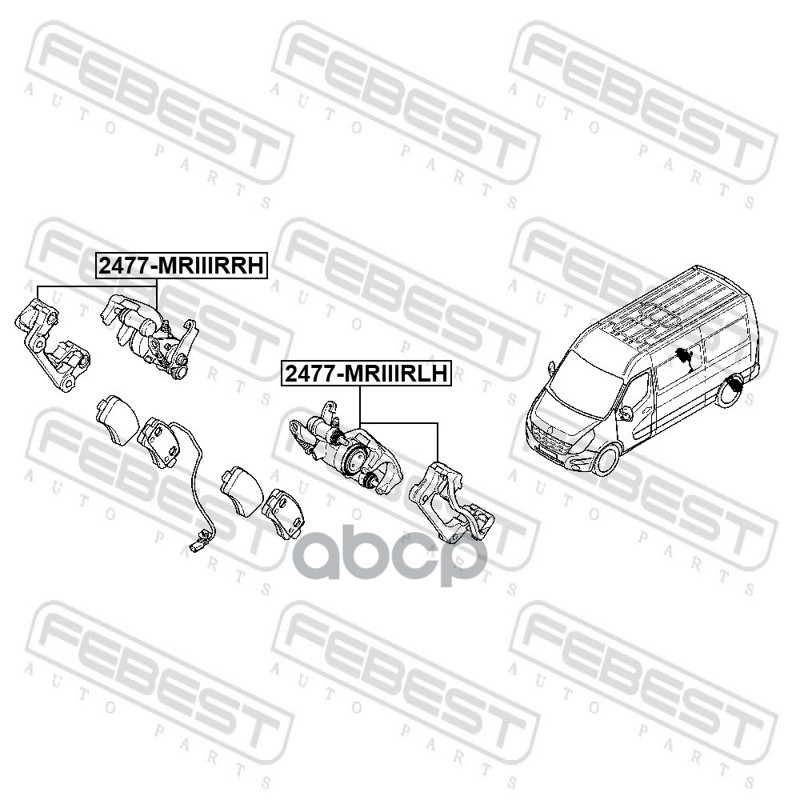 Бренд: Febest, артикул: 2477MRIIIRLH, суппорт торм. задний лев Opel Movano B 2.3 CDTI 10>. |