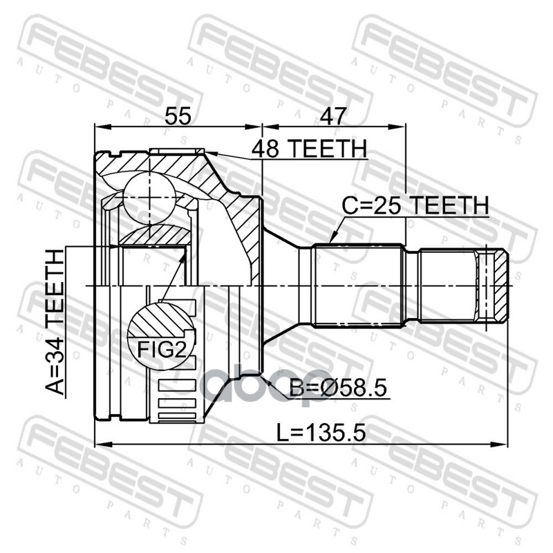 Бренд: Febest, артикул: 2510M59A48, ШРУС наружный 34x58.5x25 CITROEN Berlingo II VP. |
