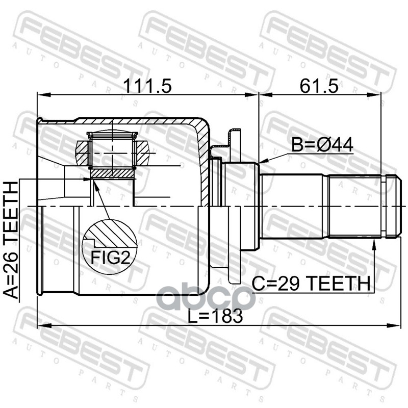 Бренд: Febest, артикул: 2911DIVFLH, Шрус внутренний левый 26x44x29. |