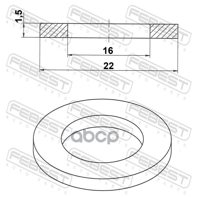Бренд: Febest, артикул: 88430162215C, шайба медная верхняя маслопровода турбокомпрессора 16x22x1.5 SCANIA P/G/R DC9/11/12. |