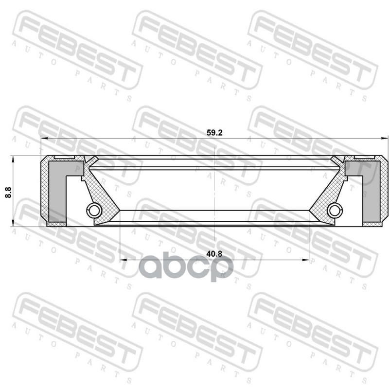 Бренд: Febest, артикул: 95GBY42590909L, Сальник коробки скоростей 40.8x59.2x8.8. |