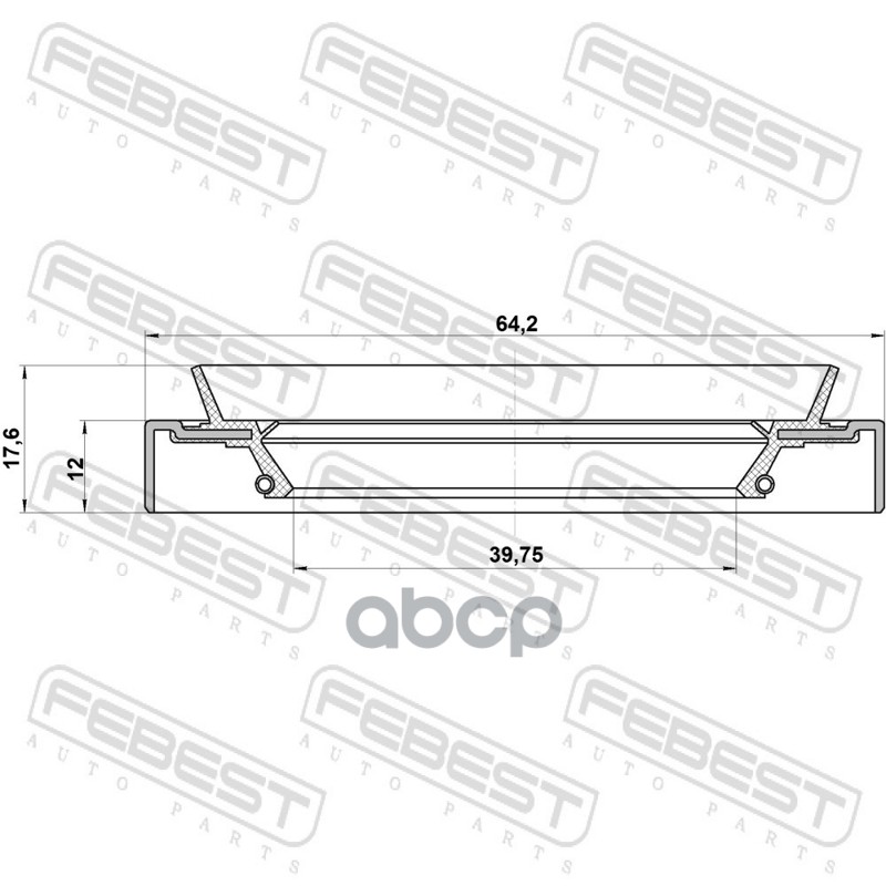 Бренд: Febest, артикул: 95HDS41641218C, сальник ступицы 41х64х12x17.6 Ford Ranger 2.5-3.0 99>. |