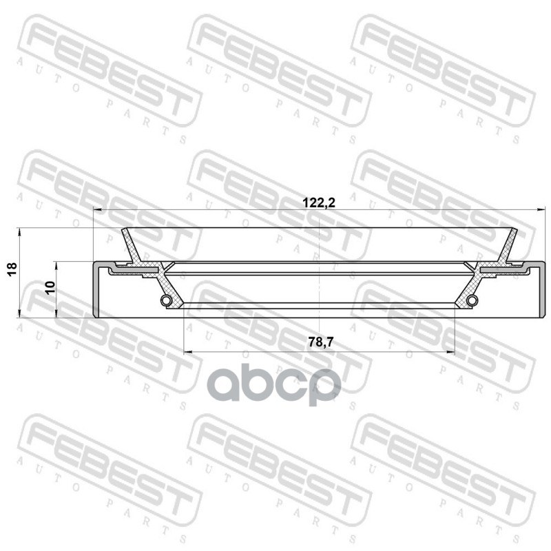 Бренд: Febest, артикул: 95HDY-801221018X, САЛЬНИК СТУПИЧНЫЙ ЗАДНИЙ 78.7X122.2X10X18 95HDY801221018X. |