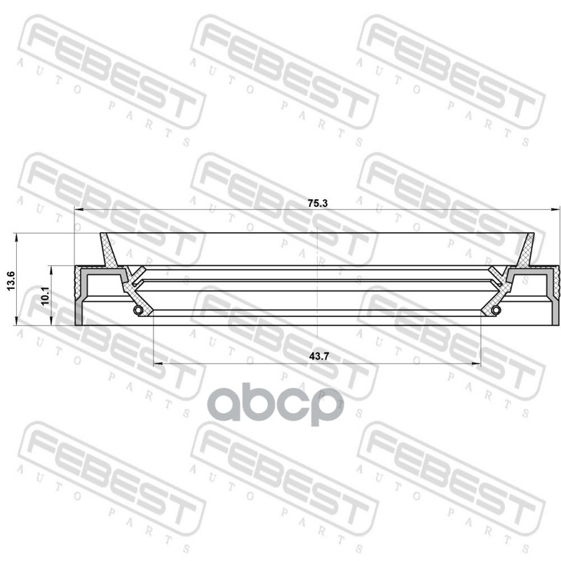 Бренд: Febest, артикул: 95JEY45751014R, Сальник редуктора заднего моста 43.7x75.3x10.1x13.. |