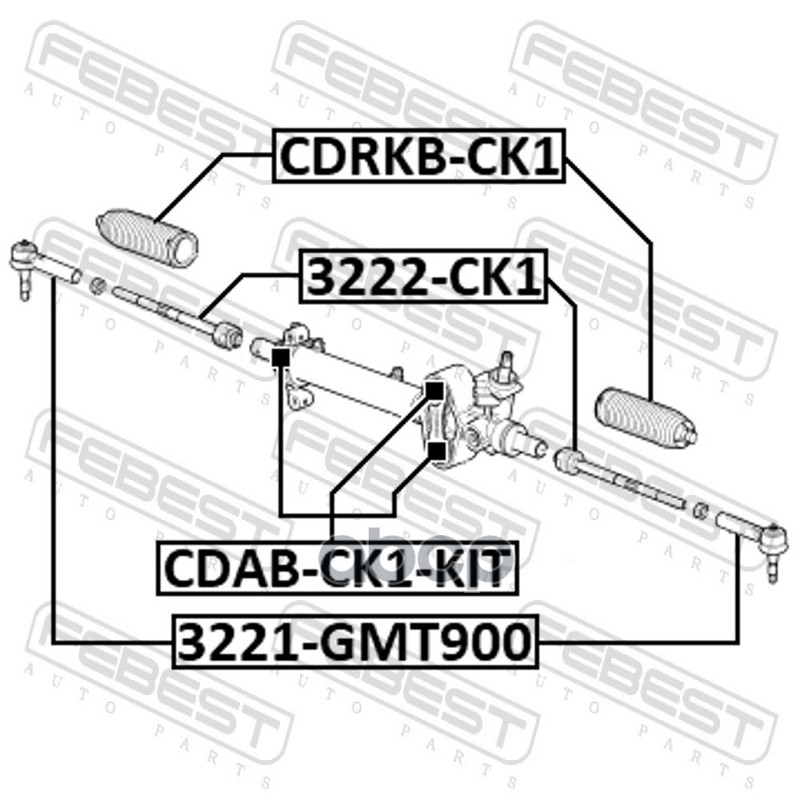 Бренд: Febest, артикул: CDABCK1KIT, САЙЛЕНТБЛОК РУЛЕВОЙ РЕЙКИ КОМПЛЕКТ. |