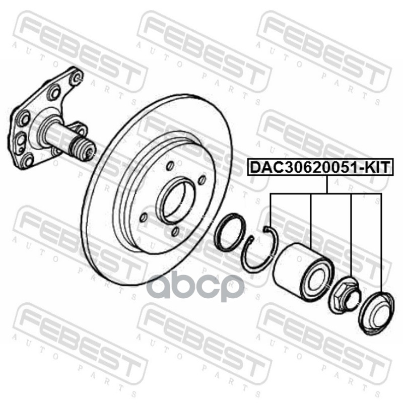 Бренд: Febest, артикул: DAC30620051-KIT, Подшипник ступицы задний CITROEN BERLINGO 2008- DAC30620051-KIT. |