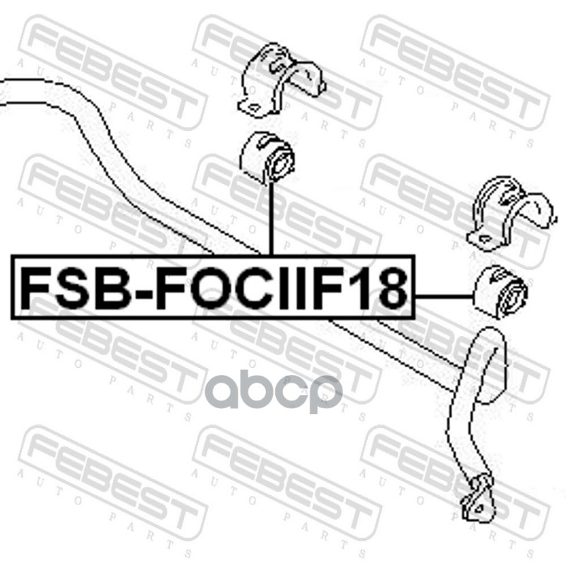 Бренд: Febest, артикул: FSB-FOCIIF18, Втулка стабилизатора передняя FORD FOCUS II (18.5мм) FSB-FOCIIF18. |