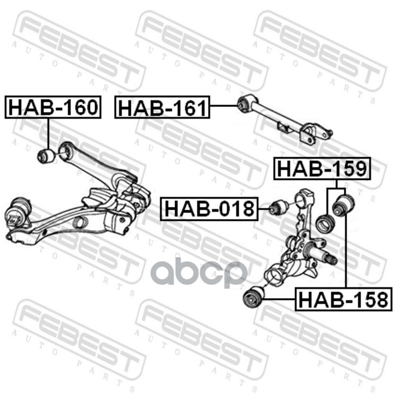 Сайлентблок заднего рычага HAB-160, 52364-SJF-004, 52371-T1G-E02, HAB160, Febes