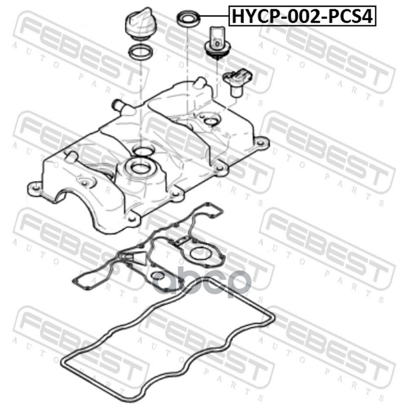 Бренд: Febest, артикул: HYCP-002-PCS4, Комплект прокладок свечного колодца Hyundai Tucson 04- 2.0 FEBEST (4 шт. в упаковке) 22443-27001 2244327001. |