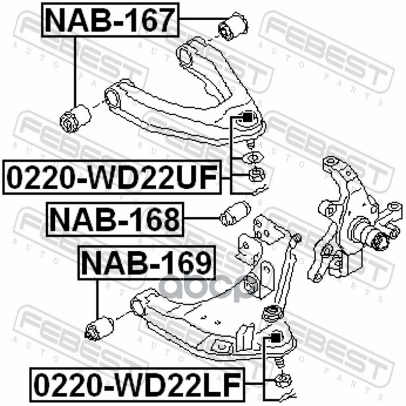 Купить запчасть NAB168 Сайлентблок Передний/Нижний/задний с доставкой в Эль-Монте.