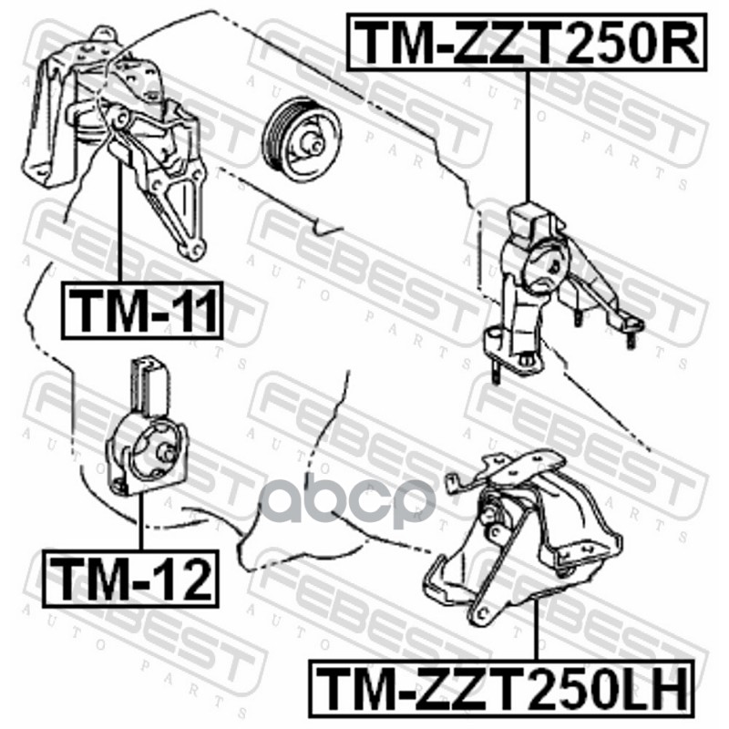 Бренд: Febest, артикул: TMZZT250LH, Опора двигателя левая TOYOTA AVENSIS ADT25#,AZT25#,CDT250,ZZT25# 2003.01-2008.11 TM-ZZT250LH. |