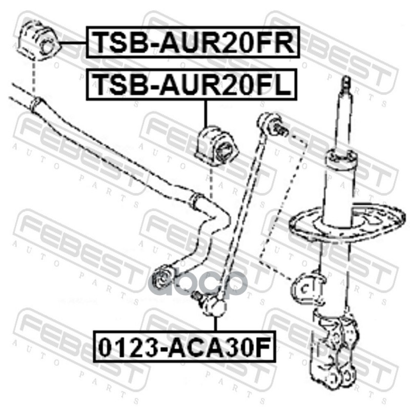 Бренд: Febest, артикул: TSB-AUR20FL, Резинки стабилизатора Toyota ACA3# ZSA3#/4# RUS ASA44 RUS 10/01- 488150R010, 48815-0R010, 4881542110, 48815-42110, 4881542111, 48815-42111, TSBAUR20FL. |