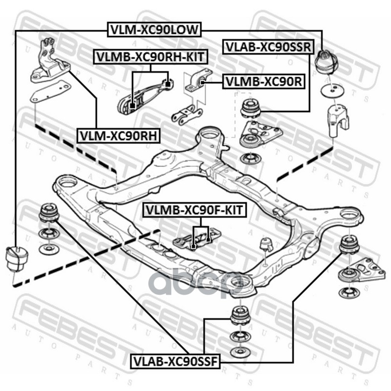 Бренд: Febest, артикул: VLMBXC90RHKIT, подушка КПП с сайлентблоком Volvo XC90 03>. |