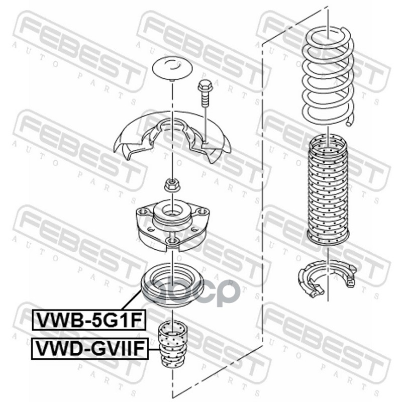 Купить запчасть VWB5G1F Подшипник опоры переднего амортизатора с доставкой в Эль-Монте.