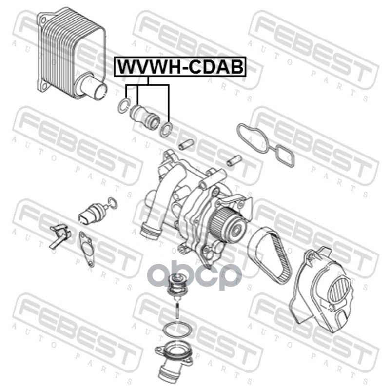Купить запчасть VWWHCDAB Штуцер от помпы к масляному радиатору с уплотнениями с доставкой по России.