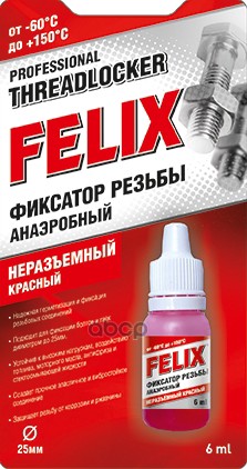 Фиксатор резьбовых соединений FELIX, 6 мл (флакон), красный Universal (Высокая степень фиксации, до +150C)