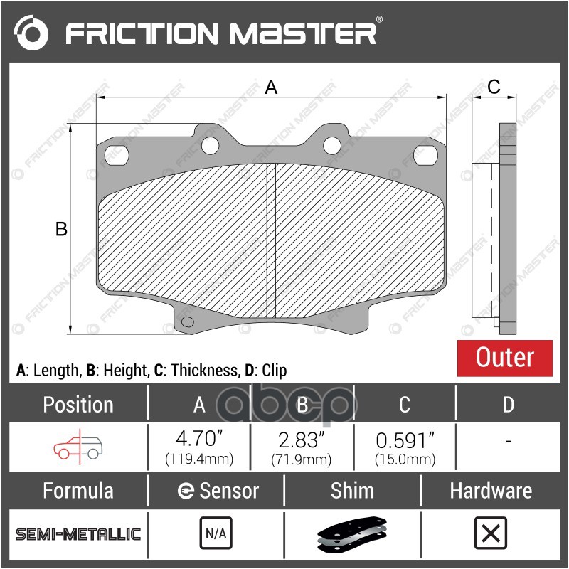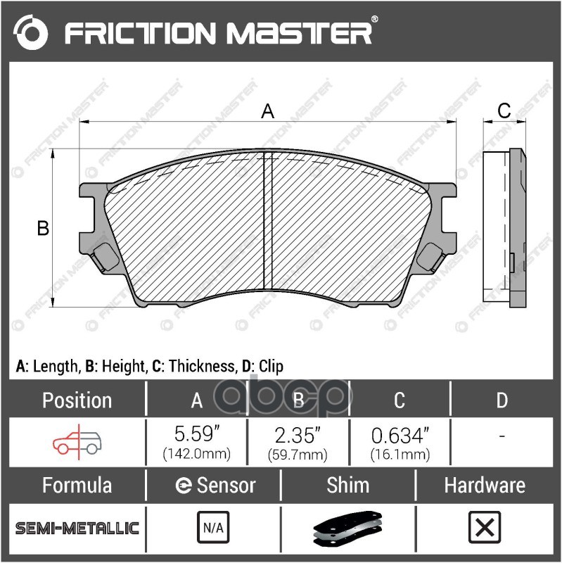 Линейка продукции Friction Master (находится под управлением LOOP Automotive Inc.) производится на заводах Bosch Brake Component LLC - одного из ведущих производителей тормозных колодок и дисков в США. Страна: США
