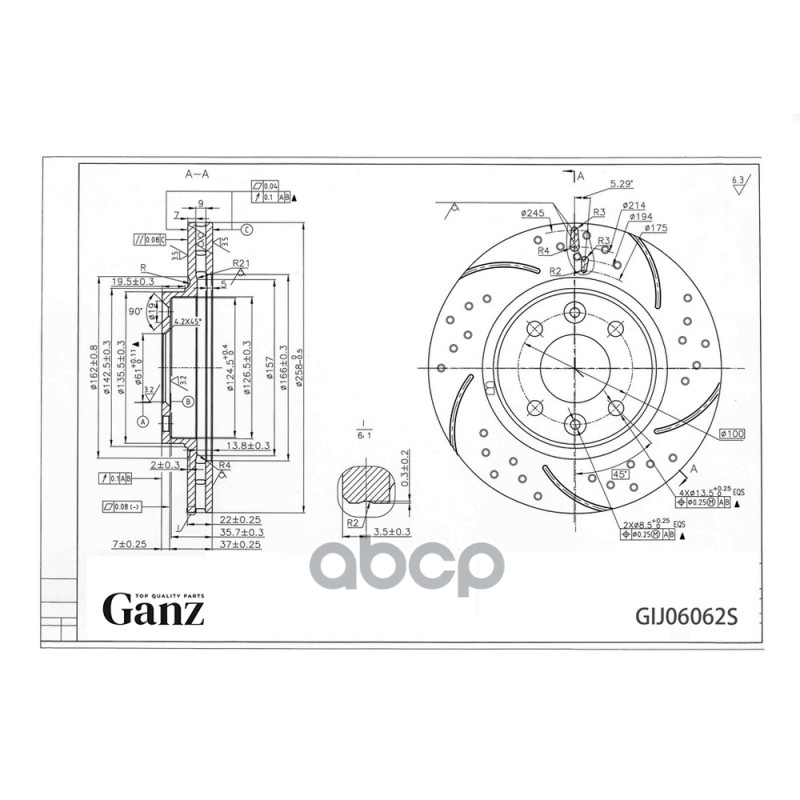 Купить запчасть GIJ06062S Диск тормозной передний перфорированный PRO-Line с покрытием (компл.2 шт) RENAULT Logan II 2013-> /Vent D=258mm GANZ GIJ06062S с доставкой в Эль-Монте.
