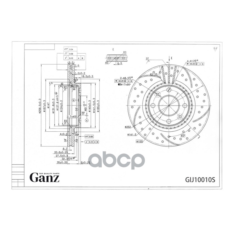 Наименование: Диск тормозной передний перфорированный PRO-Line с покрытием (компл.2 шт) RENAULT/NISSAN/LADA Largus без ABS/D=259mm GANZ GIJ10010S