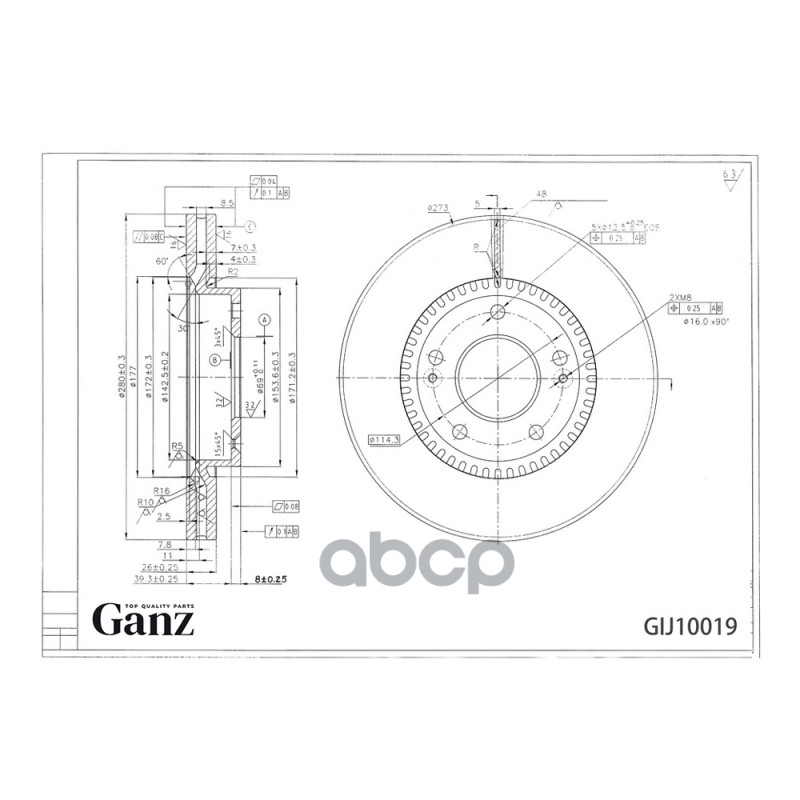 Купить запчасть GIJ10019 Диск тормозной передний с покрытием HYUNDAI Tucson/Sonata/Elantra/Cerato GANZ GIJ10019 с доставкой в Эль-Монте.