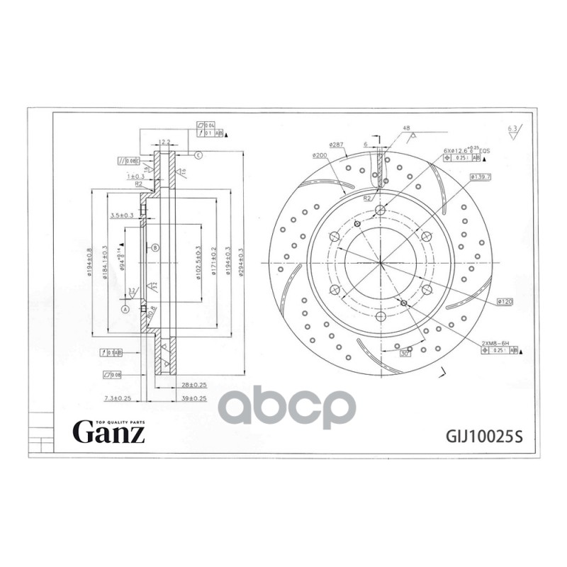 Купить запчасть GIJ10025S Диск тормозной передний перфорированный PRO-Line с покрытием (компл.2 шт) MITSUBISHI L200 2006-> /Vent D=294mm GANZ GIJ10025S с доставкой в Эль-Монте.