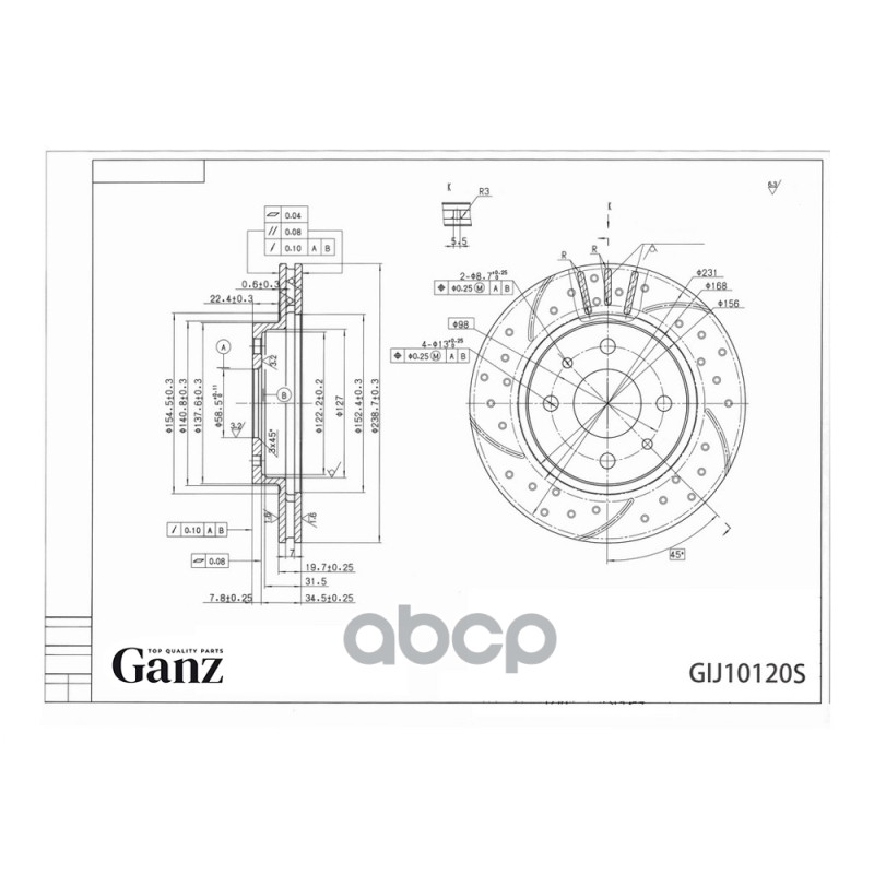 Купить запчасть GIJ10120S Диск тормозной передний перфорированный PRO-Line с покрытием (компл.2 шт) ВАЗ 2110/1118/2170/2190 R13 GANZ GIJ10120S с доставкой в Эль-Монте.