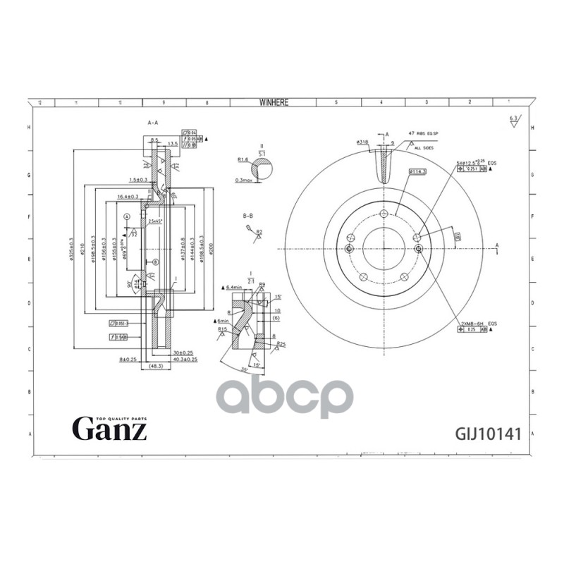 Наименование: Диск тормозной передний с покрытием HYUNDAI Santa Fe 20-> GANZ GIJ10141