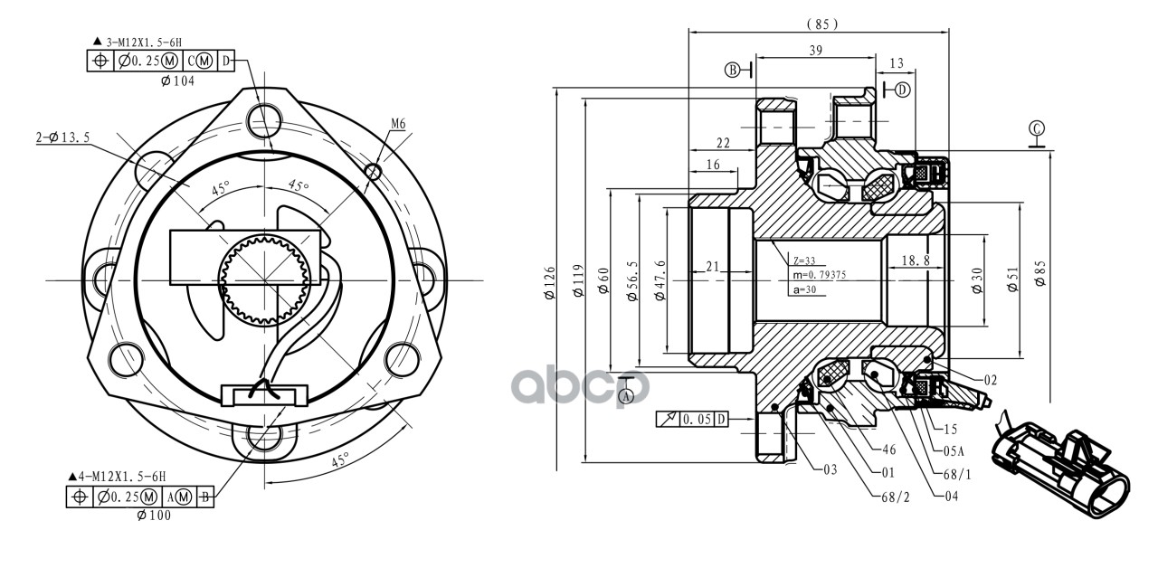Наименование: Ступица передняя в сборе L=R OPEL Astra G +ABS /4отв GANZ GIK05028