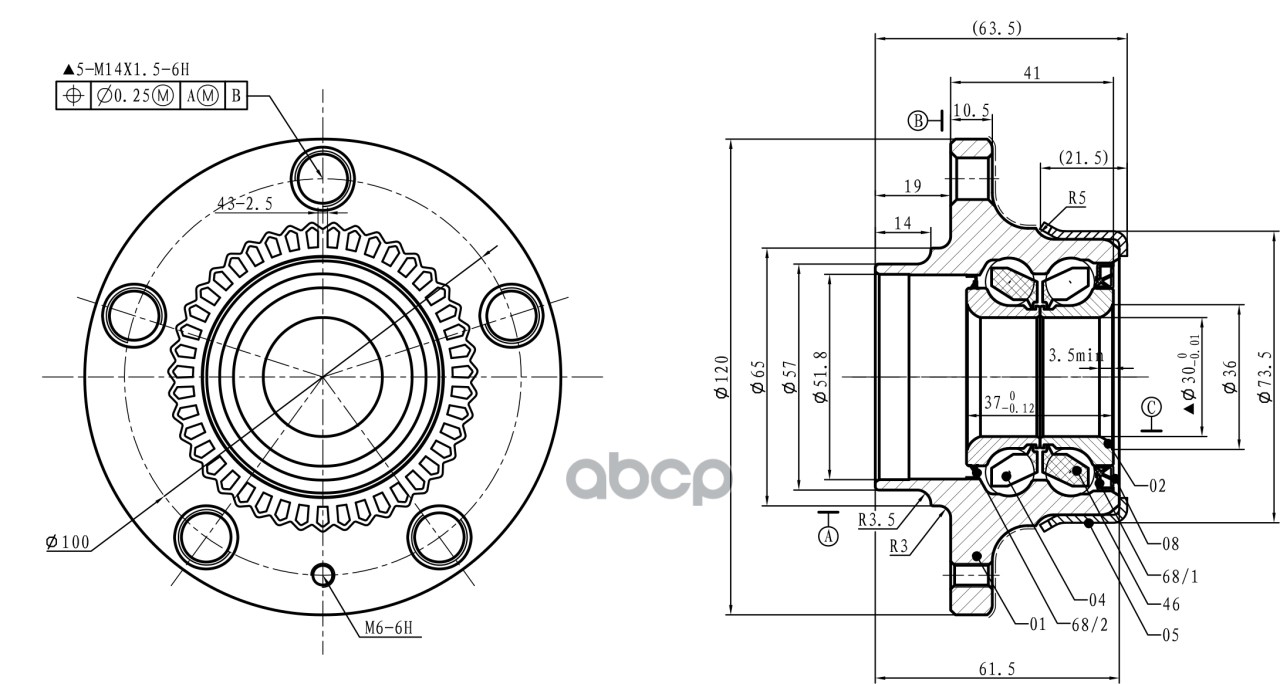 Наименование: Ступица задняя в сборе L=R VAG A3/Octavia/Roomster/Bora/Golf IV /ABS+