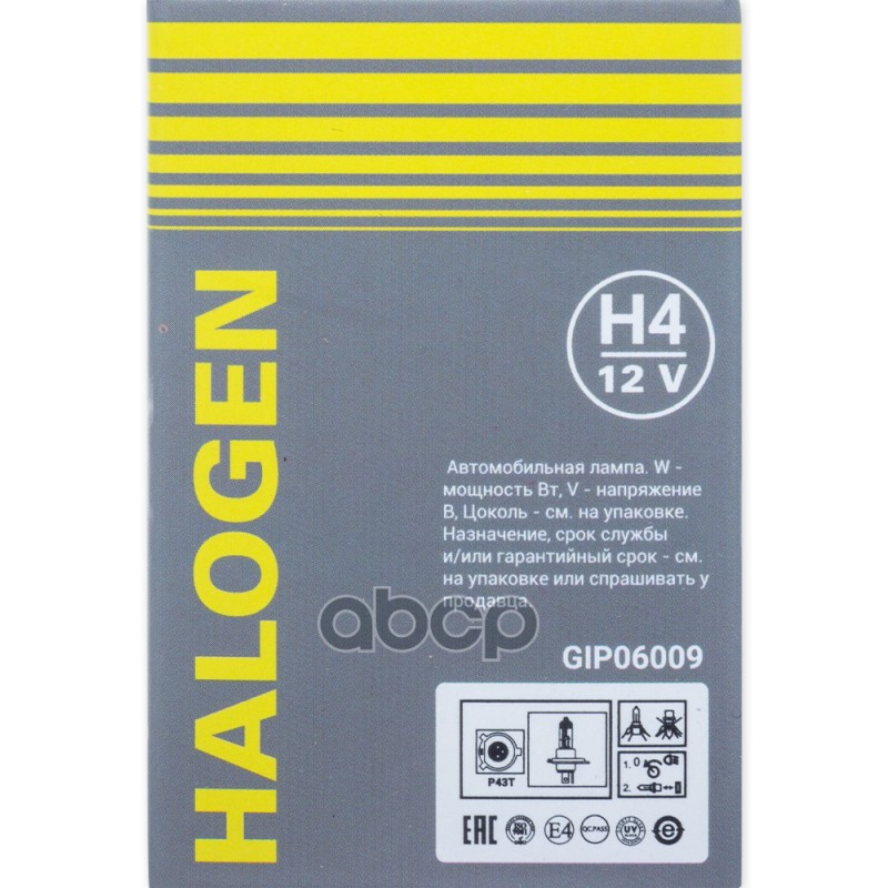 Купить запчасть GIP06009 Галогенная лампа H4 12v 60/55w (P43t) .1 шт. GANZ GIP06009 с доставкой в Эль-Монте.