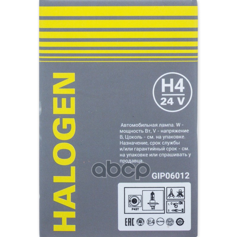 Купить запчасть GIP06012 Лампа 24V H4 100/90W P43t 1 шт. картон с доставкой в Эль-Монте.