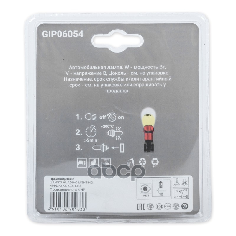 Купить запчасть GIP06054 Лампа 12V H4 100/90W +50% P43t 5000K 2 шт. блистер с доставкой в Эль-Монте.