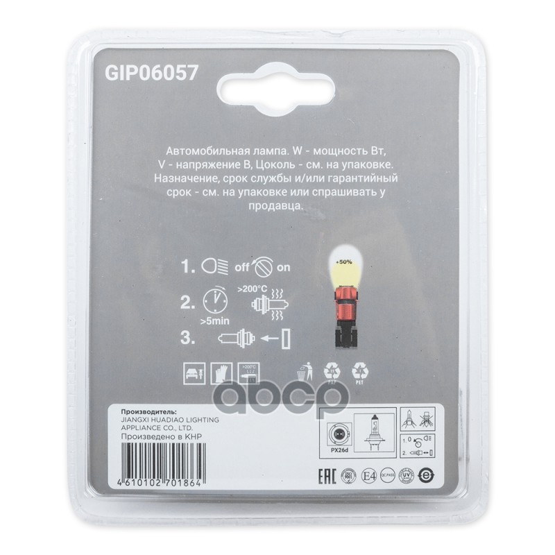 Купить запчасть GIP06057 Лампа 12V H7 100W +50% PX26d 5000K 2 шт. блистер с доставкой в Эль-Монте.