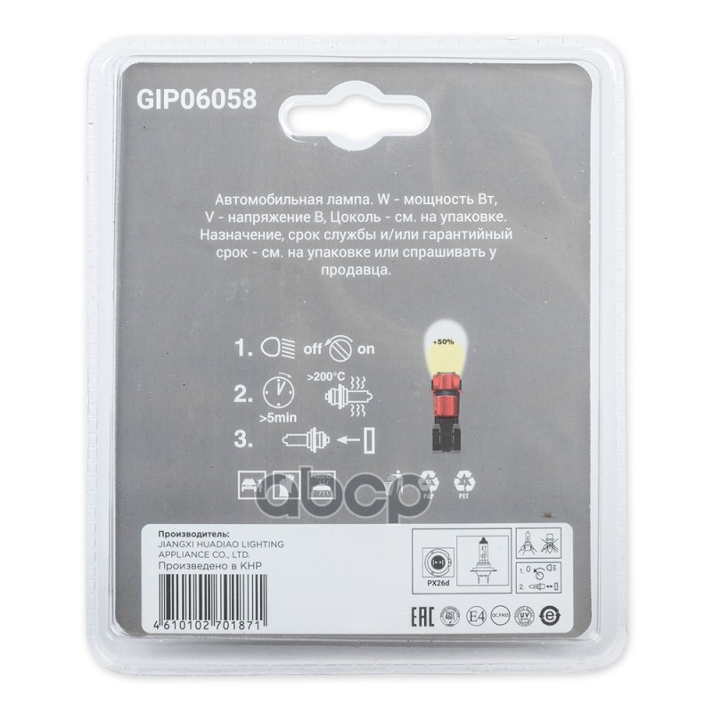 Купить запчасть GIP06058 Лампа 24V H7 70W +50% PX26d 5000K 2 шт. блистер с доставкой в Эль-Монте.