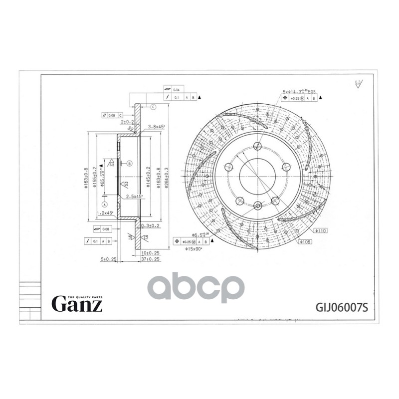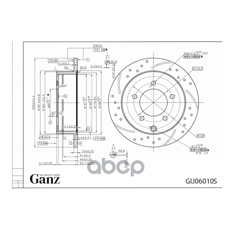 Диск тормозной задний перфорированный PRO-Line с покрытием (компл.2 шт) VAG AUDI A3 / VW GOLF 03-> GANZ GIJ06005S