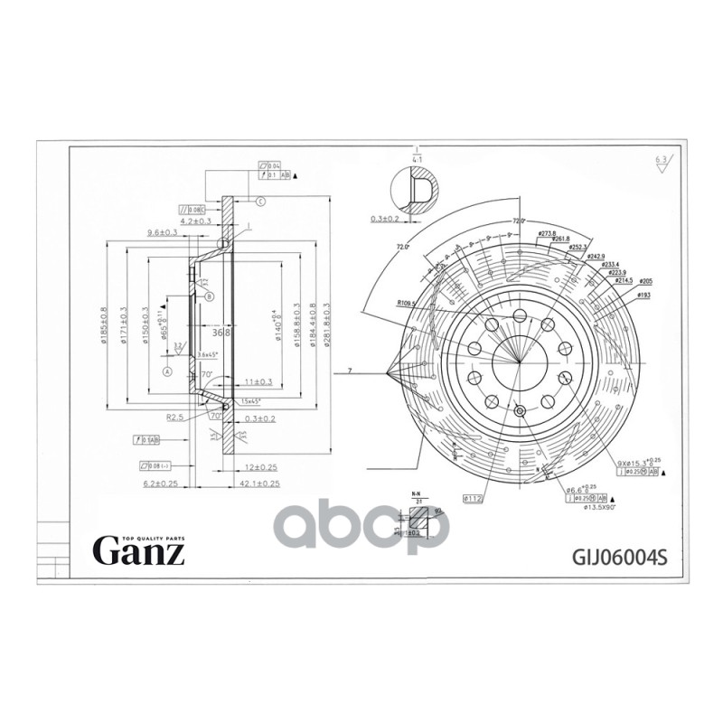 Диск тормозной задний с покрытием AUDI A3/SKODA OCTAVIA/VW GOLFV/JETTA 03- GANZ GIJ06012