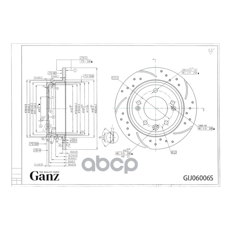 Диск тормозной задний перфорированный PRO-Line с покрытием (компл.2 шт) MITSUBISHI Lancer/Lancer Sportback GANZ GIJ06010S