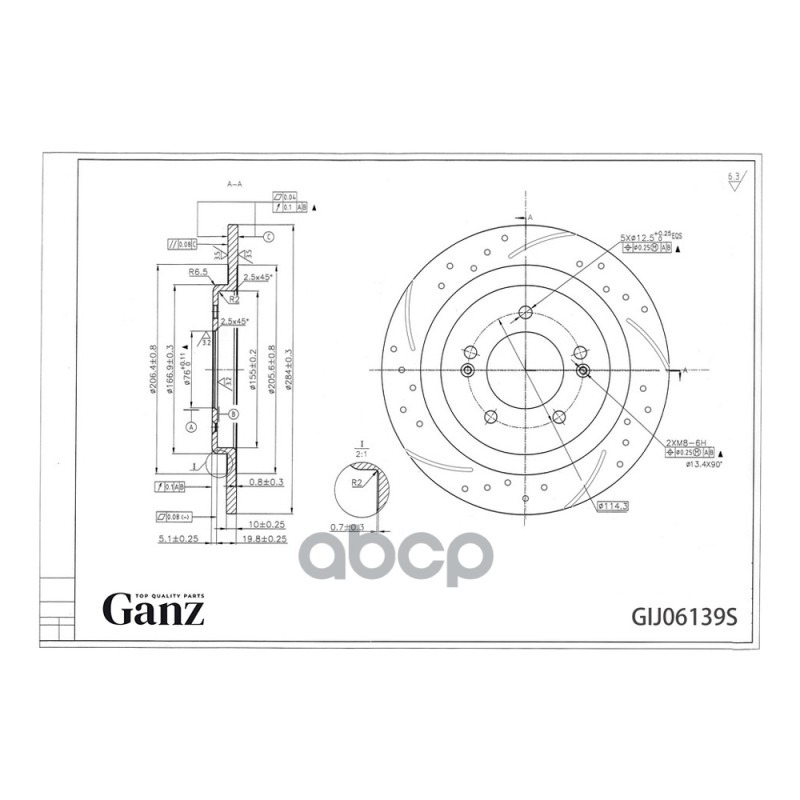 Диск тормозной передний перфорированный PRO-Line с покрытием (компл.2 шт) NISSAN Teana J31 03-08 GANZ GIJ06140S