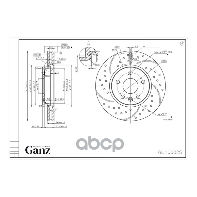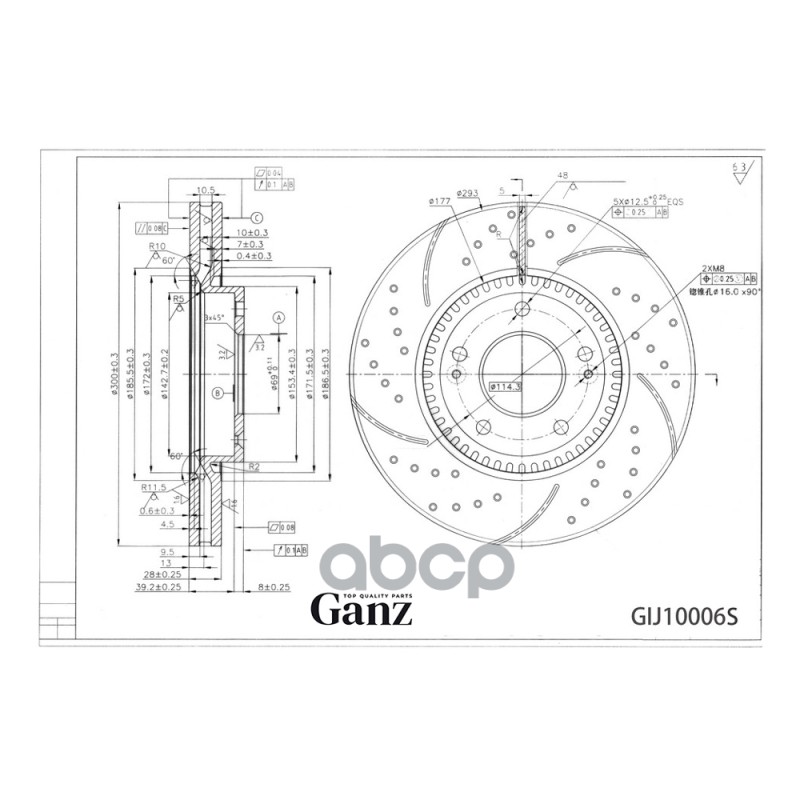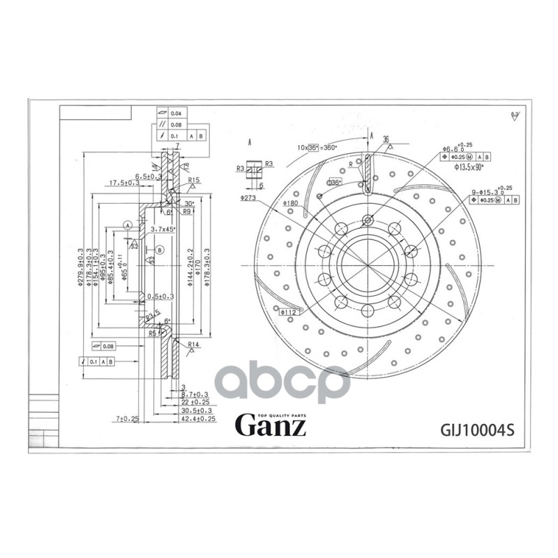 Диск тормозной передний перфорированный PRO-Line с покрытием (компл.2 шт) CHEVROLET Cruze/OPEL Astra J GANZ GIJ10002S