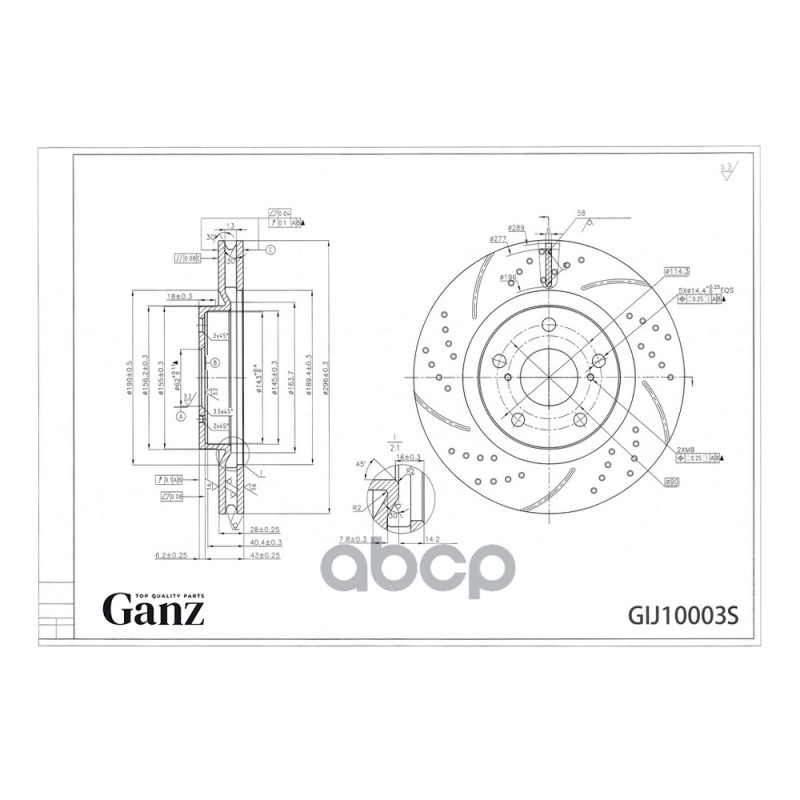 Диск тормозной передний перфорированный PRO-Line с покрытием (компл.2 шт) TOYOTA Camry/Rav4 2.0/2.4L all 06-> GANZ GIJ10003S