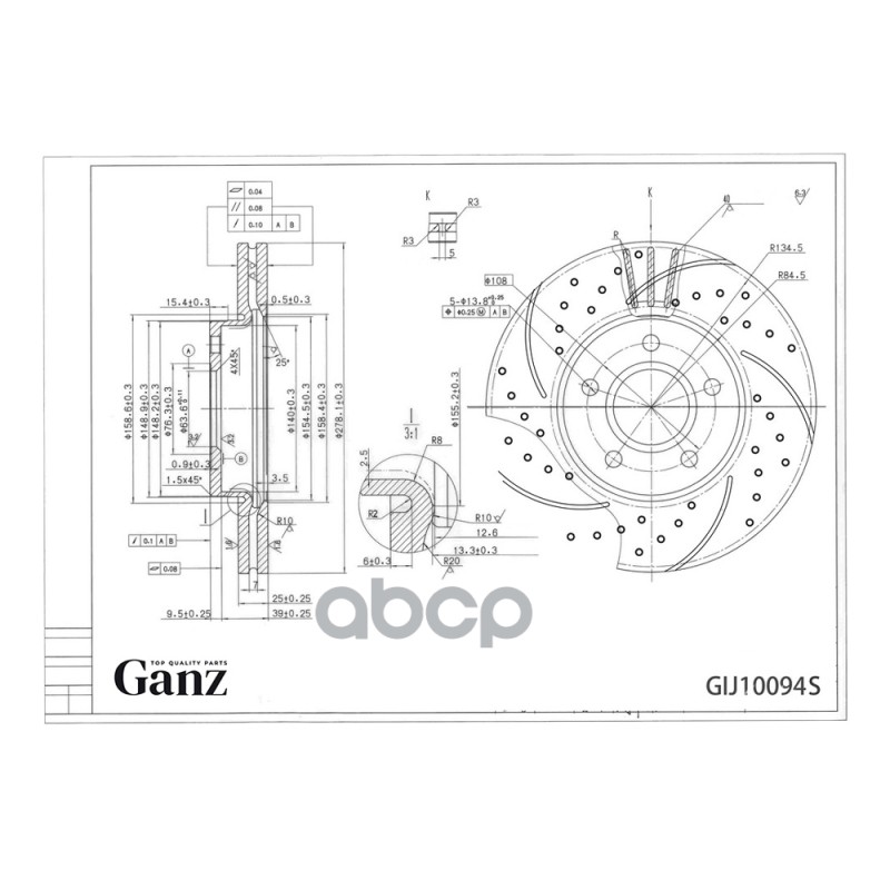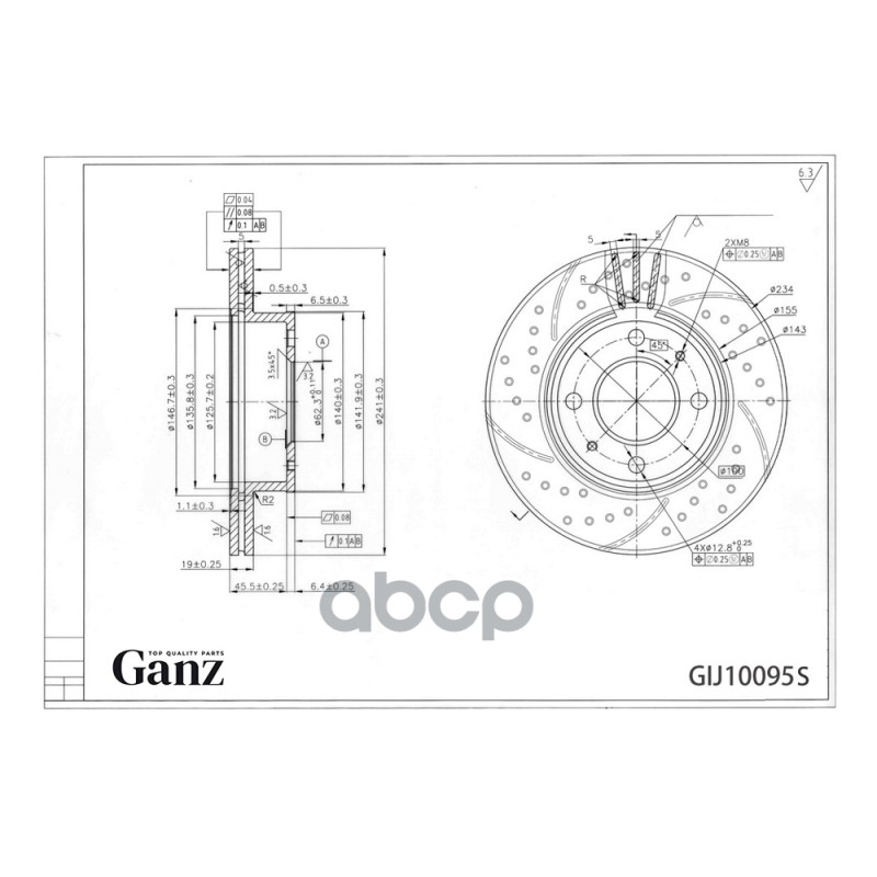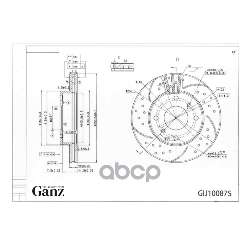 Диск тормозной передний перфорированный PRO-Line с покрытием (компл.2 шт) HYUNDAI Getz 02-11 GANZ GIJ10093S
