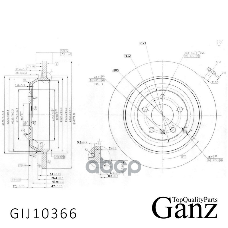 Диск тормозной задний с покрытием для FORD Transit 14-D308mm двухскатные колеса GANZ GIJ10368
