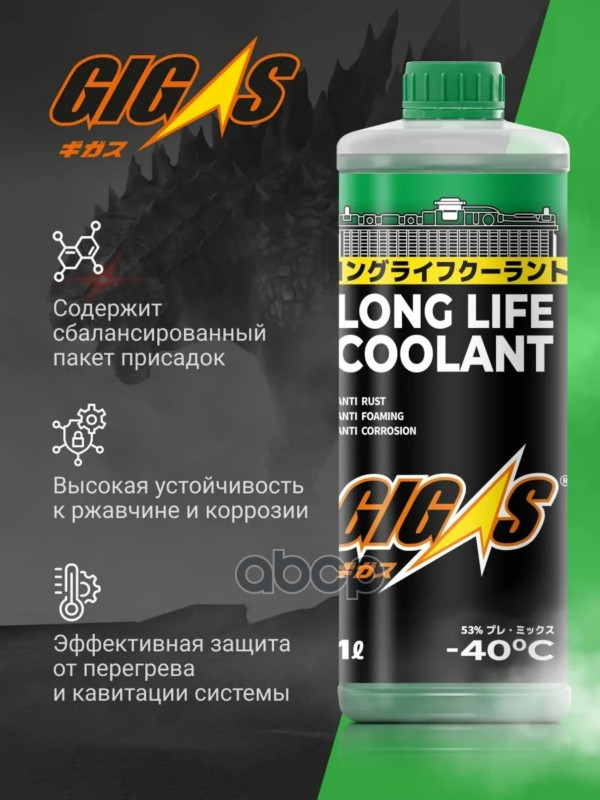 Наименование: Антифриз GIGAS LONG LIFE COOLANT -40 GREEN, зеленый, 1л KE902-99965/ 08CLAG018L0/ 000077508E20/ SOA868V9270/ KE902-99935/ KE902-99975
