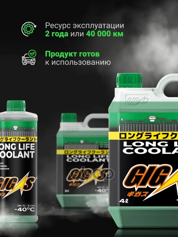 Наименование: Антифриз GIGAS LONG LIFE COOLANT -40 GREEN, зеленый, 2л KE902-99965/ 08CLAG018L0/ 000077508E20/ SOA868V9270/ KE902-99935/ KE902-99975