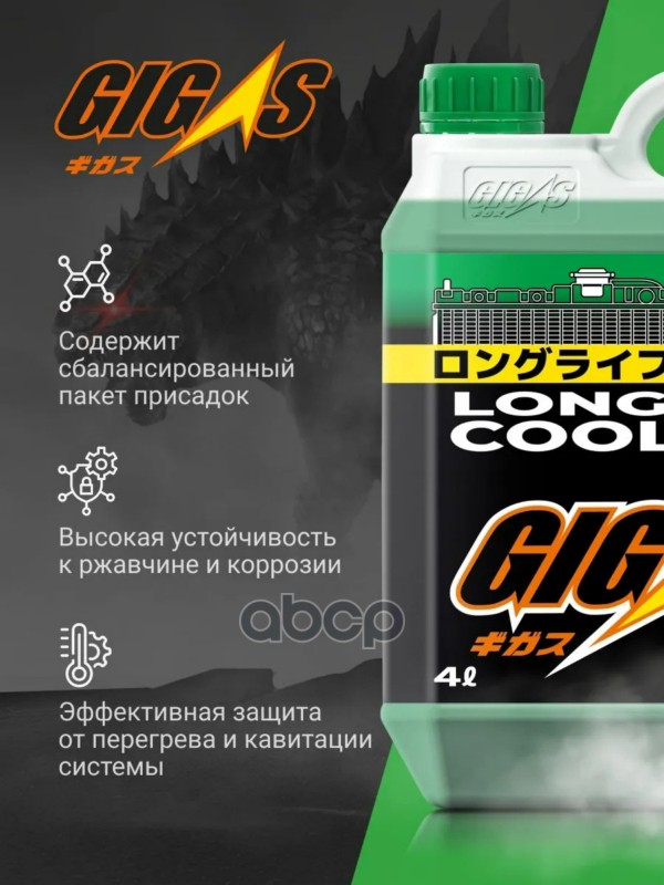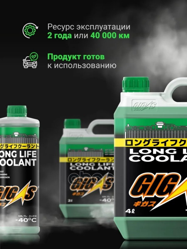 Наименование: Антифриз GIGAS LONG LIFE COOLANT -40 GREEN, зеленый, 4л KE902-99965/ 08CLAG018L0/ 000077508E20/ SOA868V9270/ KE902-99935/ KE902-99975