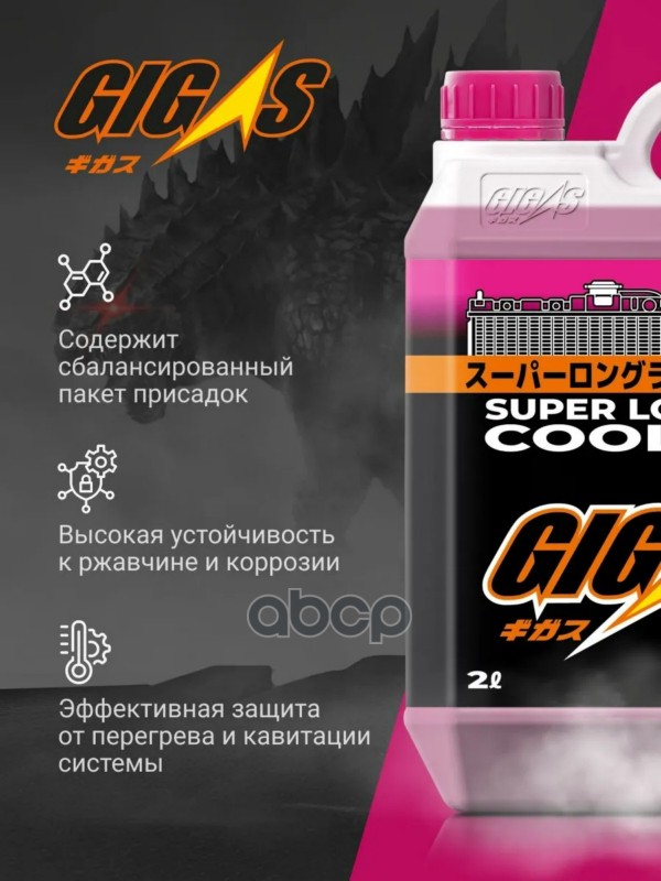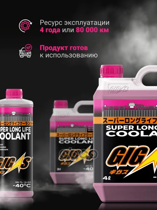 Бренд: GIGAS, артикул: SLLC40P002, Антифриз GIGAS SUPER LONG LIFE COOLANT -40 PINK, розовый, 2л. |