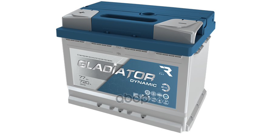 Аккумулятор GLADIATOR dynamic 77 Ah, 720 A, 276x175x190 прям. 276x175x190