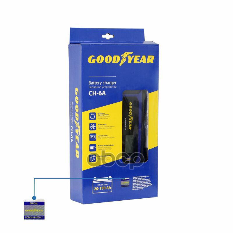 Бренд: GOODYEAR, артикул: GY003002, Зарядное устройство Goodyear 6/12 В 6 А для АКБ емкостью 3-150Ah зимний режим заряда CH-6A GY003002.